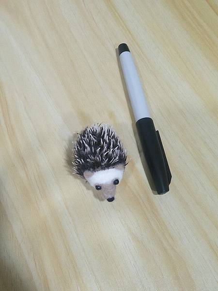 好險有朋友在旁邊給建議,臉型修正後發現牠真的是一隻刺蝟耶!而且成品迷你版小刺刺超可愛,在還沒有養刺蝟之前先戳個小翻版來陪伴 XD